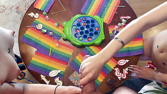 Handjob Game with Multiple Cum and Orgasms for an Amateur Director with Two Hot Girls to Give Double Handjob