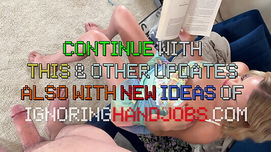 Hot sexy big tits blonde beauty in see through lingerie gives a big cock guy a bored ignored handjob
