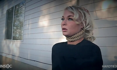 Pale elegant platinum-blonde sub Bambi Belle abused and tied up outdoors
