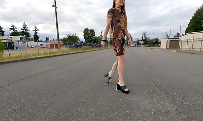 Longpussy, Dragging over a Kilogram (Two.Trio lbs) of chain off my Pussy in a Sheer Sundress out for a Walk.