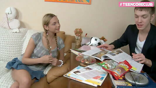 Blondie teenage with large cupcakes humps her boyfriend